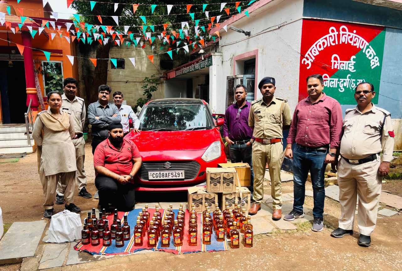 दुर्ग जिले के आबकारी विभाग की वृत्त-भिलाई क्रमांक-03 की टीम ने आज प्रातः गश्त के दौरान प्राप्त सूचना पर ने त्वरित विधिवत कार्रवाई करते हुए आरोपी मनदीप सिंह भाटिया, निवासी नेहरू नगर चौक, भिलाई के कब्जे से 51 हजार रूपए मूल्य की अवैध रूप से परिवहन की जा रही मदिरा और स्विफ्ट कार जब्त की। इस मामले में आरोपी मनदीप सिंह भाटिया को भी गिरफ्तार किया गया।