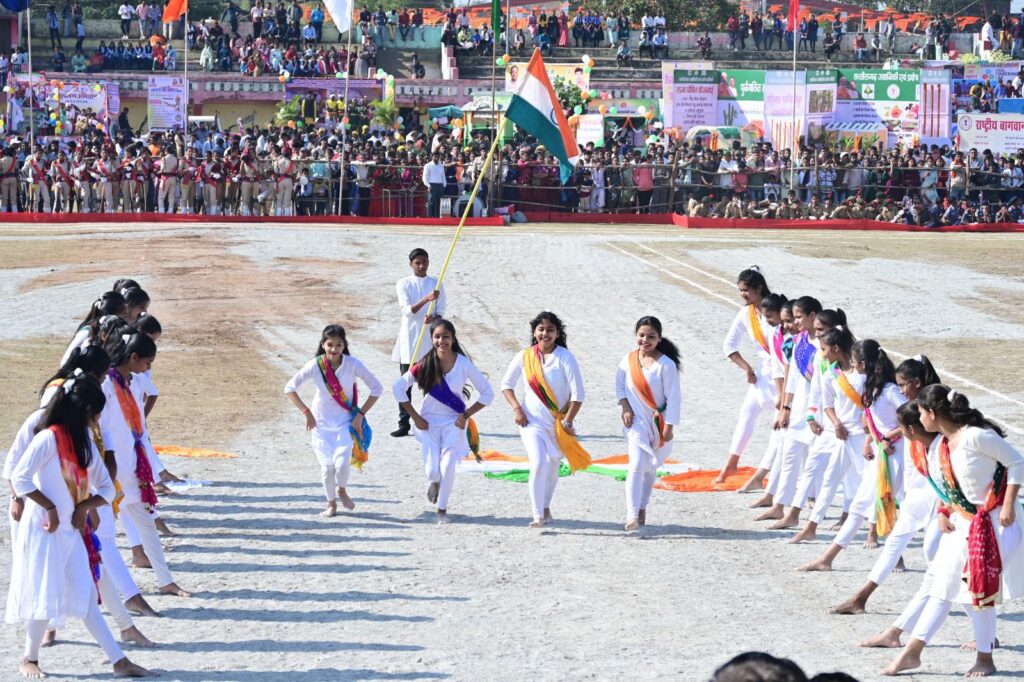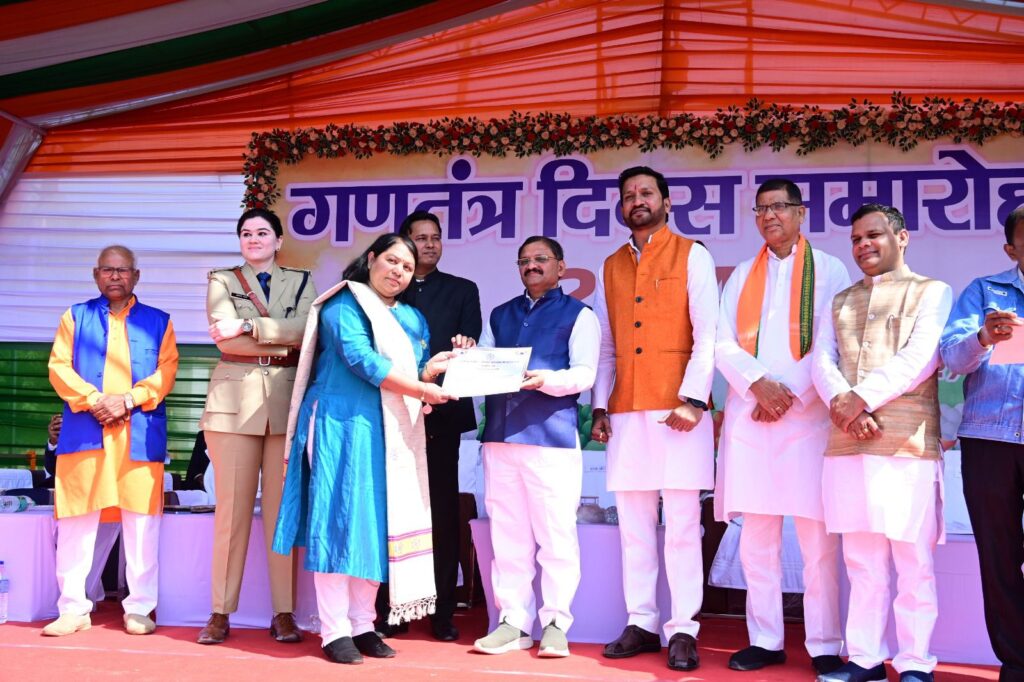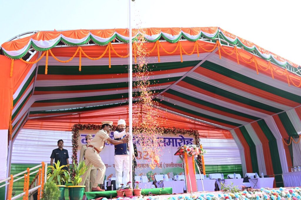 राजनांदगांव लोकसभा सांसद संतोष पाण्डे ने राष्ट्र ध्वज फहराया और परेड की सलामी ली