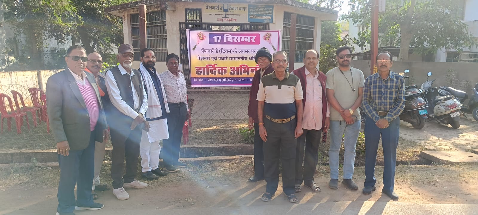 कवर्धा। राष्ट्रीय पेंशनर्स दिवस के अवसर पर दिनांक 17 दिसंबर 2025 को पेंशनर्स एसोसिएशन की बैठक स्थानीय “बापू की कुटिया” पेंशनर्स भवन, गोवर्धन नगर स्थित कलेक्टर कॉलोनी, कवर्धा में आयोजित की गई। बैठक की शुरुआत राष्ट्रपिता महात्मा गांधी के तेल चित्र पर पुष्प अर्पित कर की गई। साथ ही दिवंगत पेंशनर पदाधिकारियों को श्रद्धांजलि अर्पित की गई।