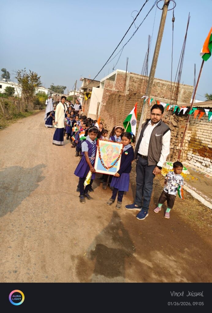 कार्यक्रम में मुख्य अतिथि के रूप में श्री विनोद जायसवाल उपस्थित रहे, जिनका विद्यालय परिवार की ओर से श्रीफल भेंट कर सम्मान किया गया। अपने उद्बोधन में श्री जायसवाल ने कहा कि बच्चों में देशभक्ति, अनुशासन और संविधान के प्रति सम्मान की भावना विकसित करना ऐसे आयोजनों का प्रमुख उद्देश्य है।