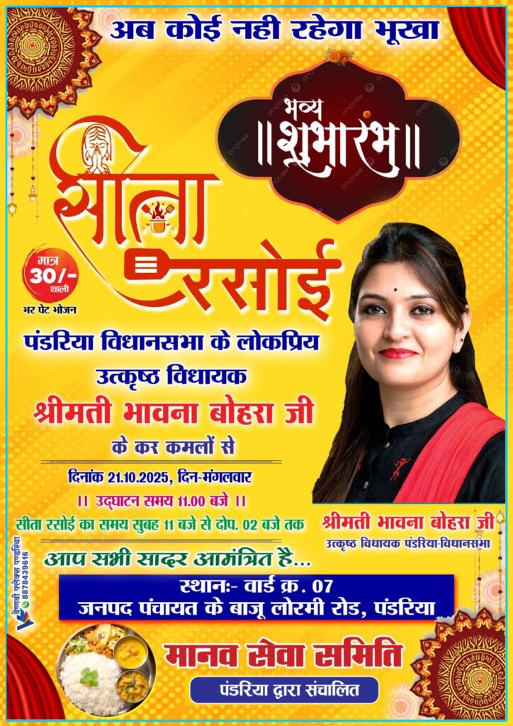 पंडरिया : आम जनता हेतु सीता रसोई का शुभारम्भ पंडरिया में 21अक्टूबर को