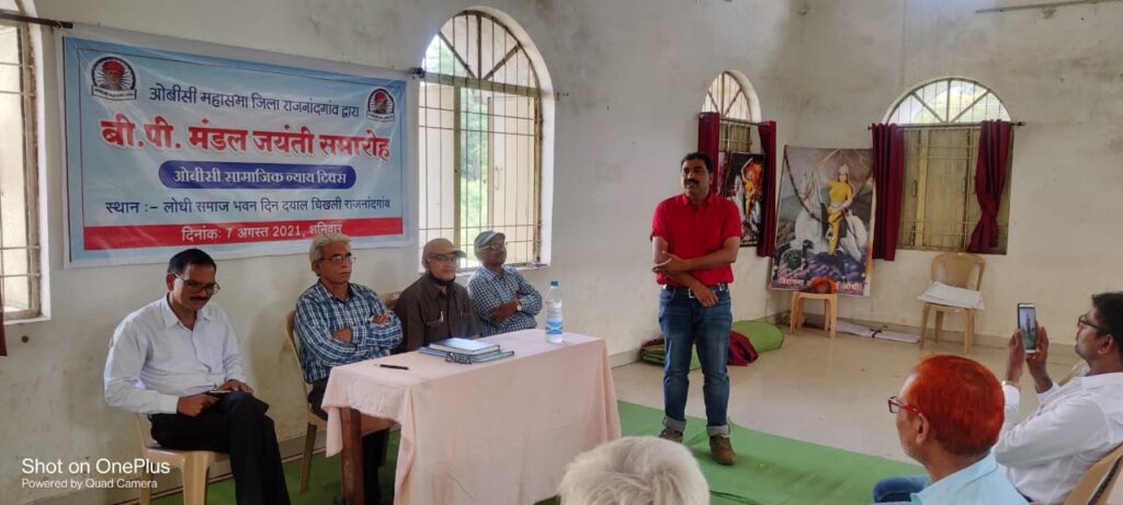 राष्ट्रीय ओबीसी महासभा रजिस्टर्ड के निर्देशानुसार प्रदेश में 7 अगस्त 1990 को घोषित ओबीसी आरक्षण के जन्मदाता बिहार के पूर्व मुख्यमंत्री बिंदेश्वरी प्रसाद मंडल के अनुशंसा पर भारत देश के 3743 जातियों को सामाजिक एवं शैक्षणिक रूप से पिछड़ा माना गए तथा संविधान के अनुच्छेद 340 डॉक्टर वास अंबेडकर द्वारा प्रदान किया गया अन्य पिछड़ा वर्ग आयोग के गठन के अनुपालन में मंडल आयोग ने ओबीसी के सामाजिक शैक्षणिक आर्थिक विकास के लिए 40 अनुशंसा दिए जाने केंद्र सरकार को अपनी रिपोर्ट सौंपी थी जिसे लागू करते हुए राष्ट्रीय मोर्चा जनता दल की सरकार के प्रधानमंत्री वी पी सिंह द्वारा 27% ओबीसी आरक्षण लागू की जाने की घोषणा किया गया जिसके तहत सदियों से सामाजिक शैक्षणिक आर्थिक विषमता के शिकार अन्य पिछड़ा वर्ग समाज को उनका हक अधिकार प्राप्त हुआ उक्त बातें अपने अध्यक्षीय भाषण में अधिवक्ता महेंद्र वर्मा ने उपस्थित लोगों को संबोधित करते हुए कही कार्यक्रम में विशेष रुप से रायपुर से उपस्थित भू वैज्ञानिक प्रथम श्रेणी अधिकारी पोस्ट से रिटायर्ड डॉक्टर आई डी आशिया, ओबीसी चारण समाज के तहत आते हैं उन्होंने अपने मुख्य अतिथि के आसंदी से संबोधन किया कि छत्तीसगढ़ राज्य में 67 जातियां ओबीसी वर्ग के अंतर्गत आते हैं जिन्हें कभी हक और अधिकार नहीं मिला था उनकी सामाजिक आर्थिक स्थिति देनी थी किंतु मंडल आयोग के लागू होने से लाखों लोगों को शिक्षा एवं नौकरी में आगे आने का अवसर मिला, किंतु ओबीसी समाज जातियों में बैठे होने के कारण संगठित नहीं होने से उन्हें पूरा अधिकार आज तक नहीं मिल पाया है इसलिए जातियों में बटे ओबीसी समाज को अपनी मूल पहचान संवैधानिक पहचान ओवैसी के रूप में संगठित होना पड़ेगा मांगने से तो भीख नहीं मिलता इसके लिए हमें संघर्ष कर अधिकार पूछना पड़ेगा यदि छत्तीसगढ़ के 52% ओबीसी संगठित हो जाए भारत देश के संगठित हो जाए हमें मांगने वाला नहीं देने वाला बन जाएंगे और राज्य और केंद्र की सरकार भी ओबीसी समाज की होगी।