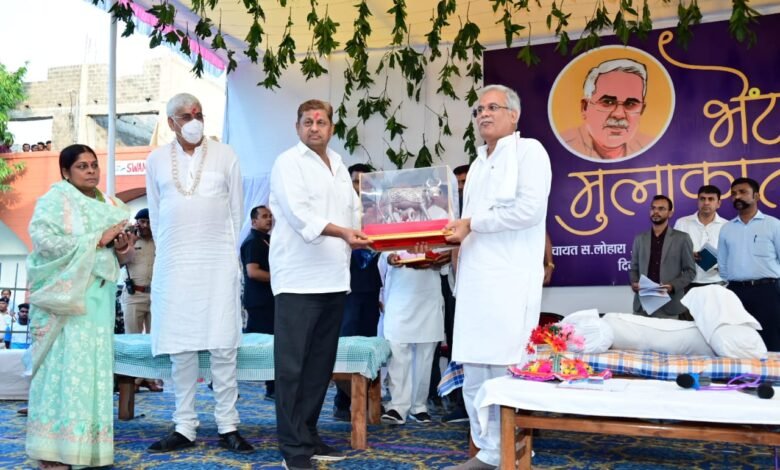 कवर्धा, 10 अक्टूबर 2022। मुख्यमंत्री श्री भूपेश बघेल अपने प्रदेश व्यापी भेंटवार्ता एवं जनचौपाल के तहत आज सोमवार को कबीरधाम जिले के कवर्धा विधानसभा क्षेत्र के प्रवास पर पहुंचे। श्री बघेल ने अपने भेंटवार्ता कार्यक्रम के तहत कवर्धा विधानसभा क्षेत्र के सुदूर वनांचल ग्राम झलमला और नगर पंचायत सहसपुर लोहारा में आमजनों से सीधा संवाद किए। मुख्यमंत्री श्री बघेल ने इस भेट मुलाकात कार्यक्रम में आमजनों से सीधा संवाद कर राज्य सरकार की प्राथमिकता में शामिल राजीव गांधी किसान न्याय योजना, ऋण माफी योजना, स्वामी आत्मानंद अंग्रेजी माध्यम स्कूल, गोधन न्याय योजना, राजीव गांधी भूमिहीन ग्रामीण कृषि मजदूर न्याय योजना, मुख्यमंत्री सुपोषण अभियान, मुख्यमंत्री हॉटबाजार योजना सहित अन्य योजनाओं की क्रियान्वयन की आकलन की जानकारी ली और योजनाओं की फीडबैक लिए।