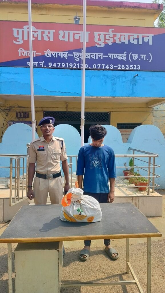 खैरागढ़ : दिनांक 20/04/2026 को अवैध शराब जैसे सामाजिक बुराई वाले अपराधों पर अंकुश लगाने जिला के सी जी पुलिस टीम के द्वारा मुहिम चलाने के दौरान मुखबिर की सूचना पर घटना स्थल नर्मदा कुंड के पास बुढ़ानभाठ रोड़ छुईखदान के पास रेड कार्यवाही किया गया आरोपी टिकेश पटेल पिता फुलेश पटेल उम्र 21 सकिन वार्ड नं. 09 तुरकारी पारा खैरागढ़ थाना खैरागढ़ जिला केसीजी (छत्तीसगढ़) के कब्जे से एक सफेद रंग के प्लास्टिक बोरी में 30 पौवा देशी शोले प्लेन शराब कुल मात्रा 5.400 बल्क लीटर शराब कीमती 2400 रूपये जप्त कर कब्जा पुलिस लिया। आरोपी टिकेश पटेल के विरुद्ध अपराध क्रमांक 148/2026 धारा 34(2) आबकारी एक्ट के तहत कार्यवाही किया गया। आरोपी टिकेश पटेल को आज दिनांक 21/04/2026 को माननीय न्यायालय पेश किया गया जिसे माननीय न्यायालय के आदेशानुसार उपजेल सलोनी भेजा गया। उपरोक्त कार्यवाही में छुईखदान पुलिस स्टाॅफ का सराहनीय योगदान रहा। शराब जुआ सट्टा जैसे सामाजिक बुराई एवं अपराध के खिलाफ लगातार मुहिम जारी रहेगी।