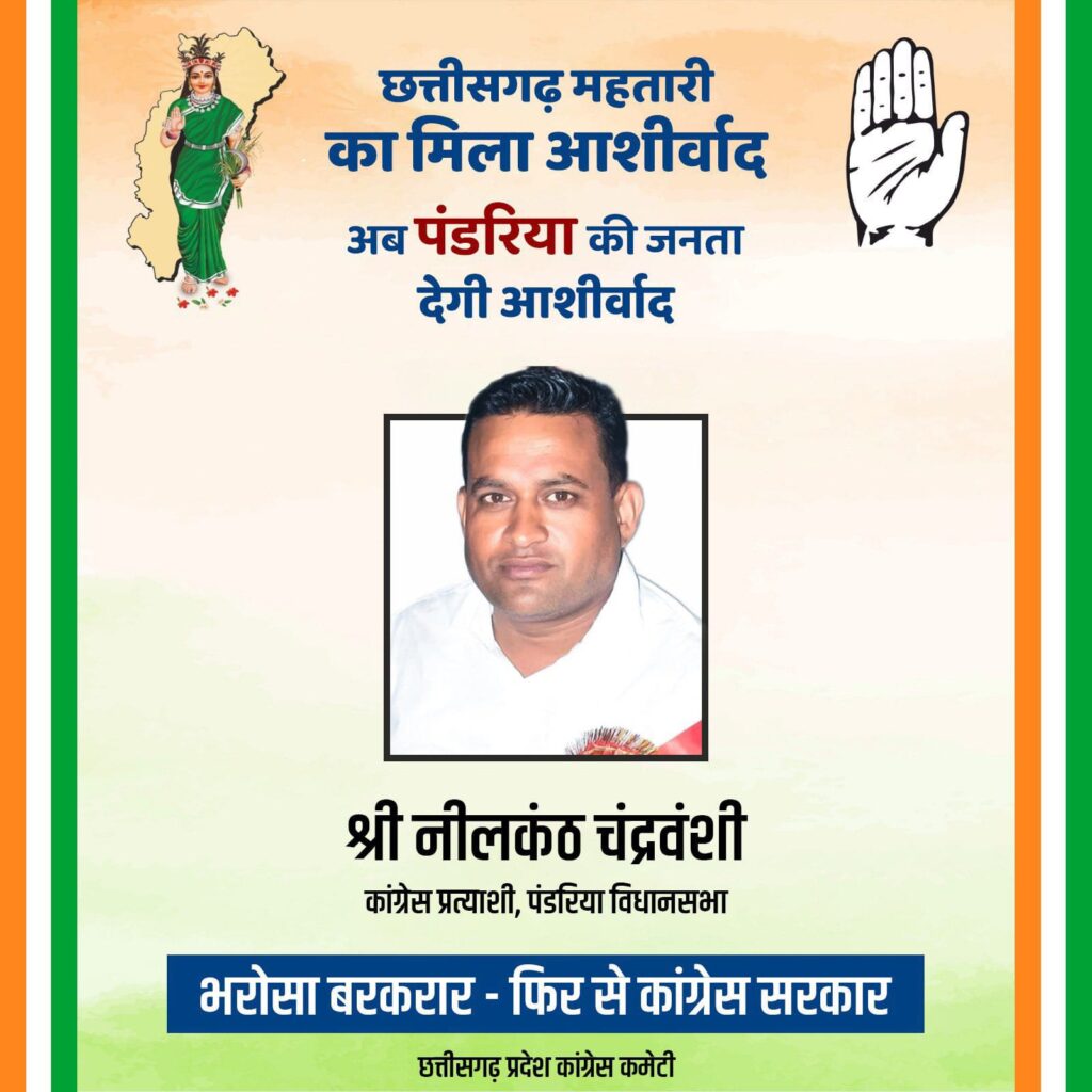 बताते चले कि नीलकंठ चंद्रवंशी जन जन तक पहुंच रहे हैं व उनसे संपर्क साधकर भूपेश बघेल सरकार की सफलता को बता रहें हैं। कैसे भूपेश सरकार ने किसानों युवाओं और महिलाओं के लिए कार्य किया है और आगे भी करते रहेगी। यही नहीं लोगों में भी नीलकंठ चंद्रवंशी को प्रत्याशी बनाए जाने से उत्साह नजर आ रहा है।