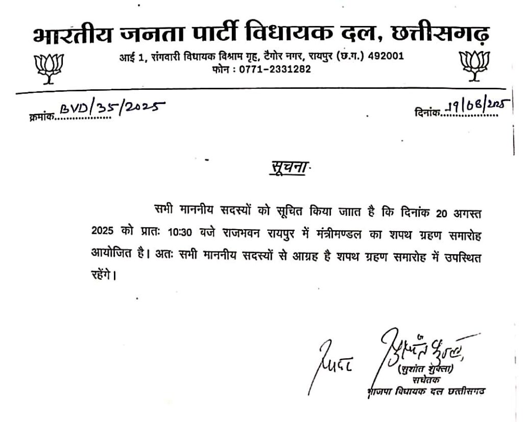 भाजपा विधायक दल मुख्य सचेतक की हैसियत से सुशांत शुक्ला ने पत्र जारी कर मंत्री मंडल विस्तार की खबरों की पुष्टि कर दी है। तीन नए विधायक जो मंत्री पद की शपथ लेंगे उनमें प्रमुख रूप से गजेंद्र यादव एक ऐसा नाम है जो पहले से ही माना जा रहा था। इसके बाद आरंग से विधायक खुशवंत सिंह साहेब और अंबिकापुर से टी एस सिंहदेव को हराकर विधायक बने राजेश अग्रवाल के नाम शामिल हैं।