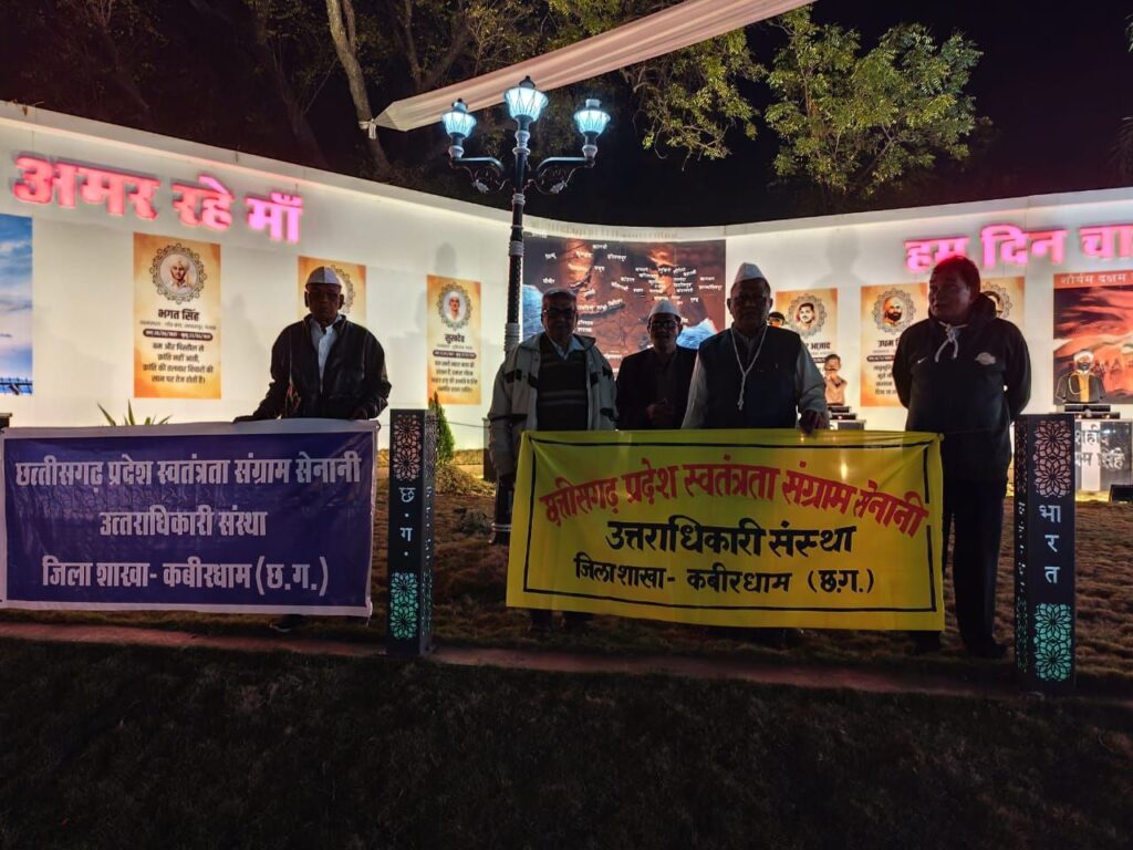 कार्यक्रम में स्वतंत्रता संग्राम सेनानी उत्तराधिकारी परिवार के डा. नरेश कुमार यदु, श्री महेश महोबिया, श्री एस.एस. जैन, श्री नरोत्तम महोबिया सहित सीनियर सिटीजन समिति कबीरधाम के राष्ट्रपति पुरस्कार से सम्मानित श्री आदित्य श्रीवास्तव, श्री प्रभाकर शुक्ला एवं श्री राजेश पांडे उपस्थित रहे।