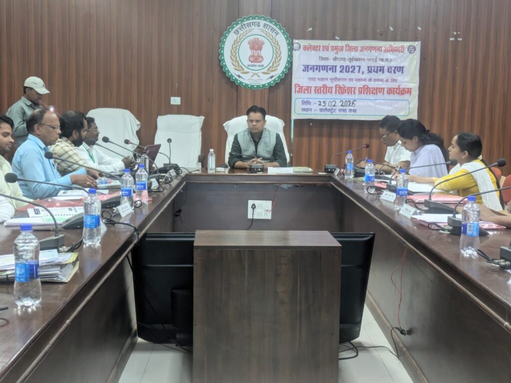खैरागढ़ : भारत की जनगणना 2027 के प्रथम चरण “मकान सूचीकरण एवं मकानों की गणना” के संबंध में दिनांक 25.02.2026 से 26.02.2026 तक दो दिवसीय प्रशिक्षण कार्यशाला का आयोजन कलेक्ट्रेट सभा कक्ष, खैरागढ़-छुईखदान-गंडई में किया जा रहा है।