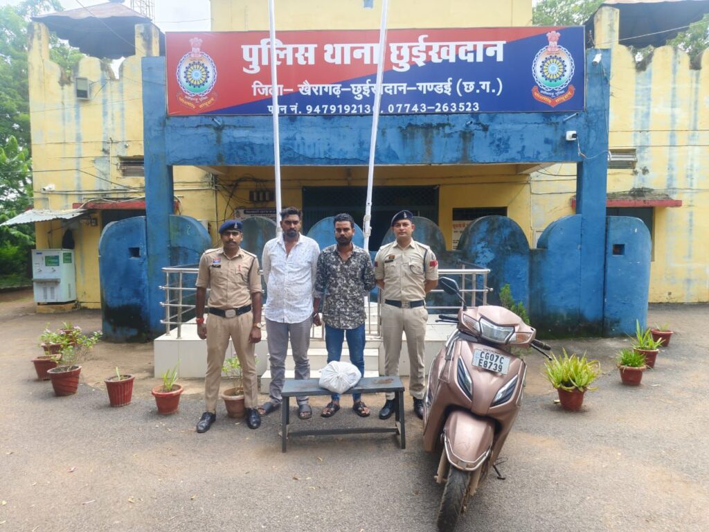सूचना पर त्वरित कार्रवाई करते हुए पुलिस टीम द्वारा चंद्राकर ढाबा के पास खैरागढ़ जाने वाला मेन रोड़ छुईखदान के पास रेड की गई, जहाँ दो आरोपियों –