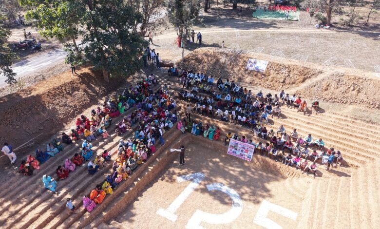 करमरी में ग्रामीणों द्वारा मानव श्रृंखला बनाकर ‘आत्मनिर्भर गांव – विकसित भारत’ का दिया संदेश
