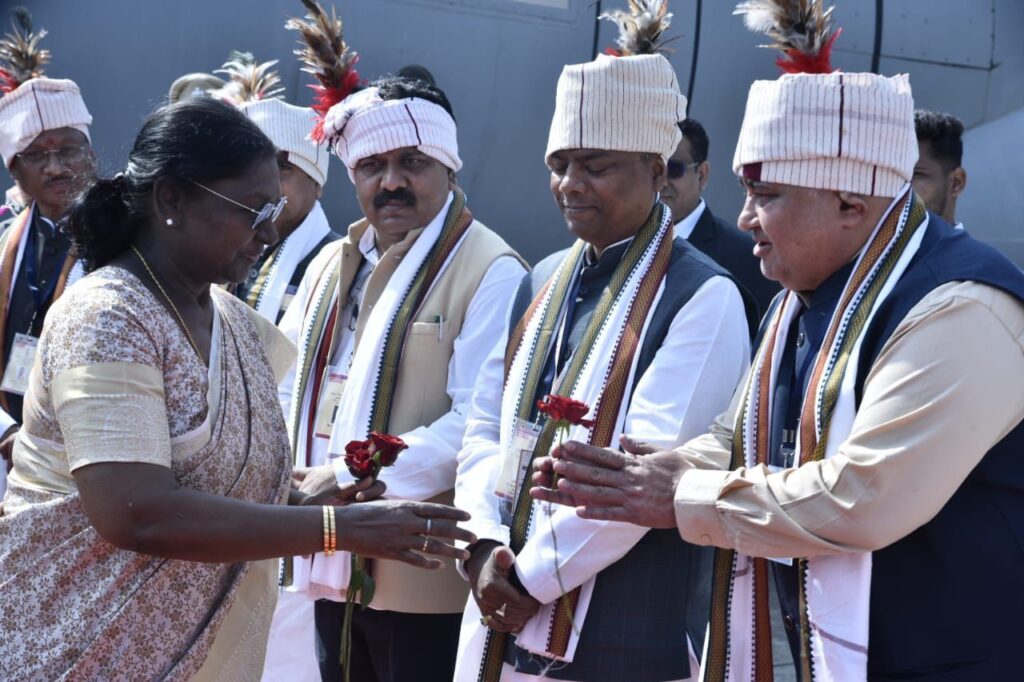 राष्ट्रपति द्रौपदी मुर्मू का जगदलपुर के मां दंतेश्वरी एयरपोर्ट में आत्मीय स्वागत