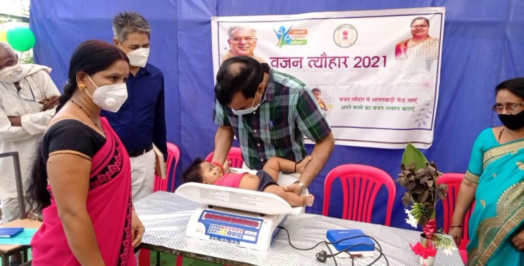 कवर्धा:चार माह की माही का वजन कर कलेक्टर ने शुरू किया वजन त्यौहार।