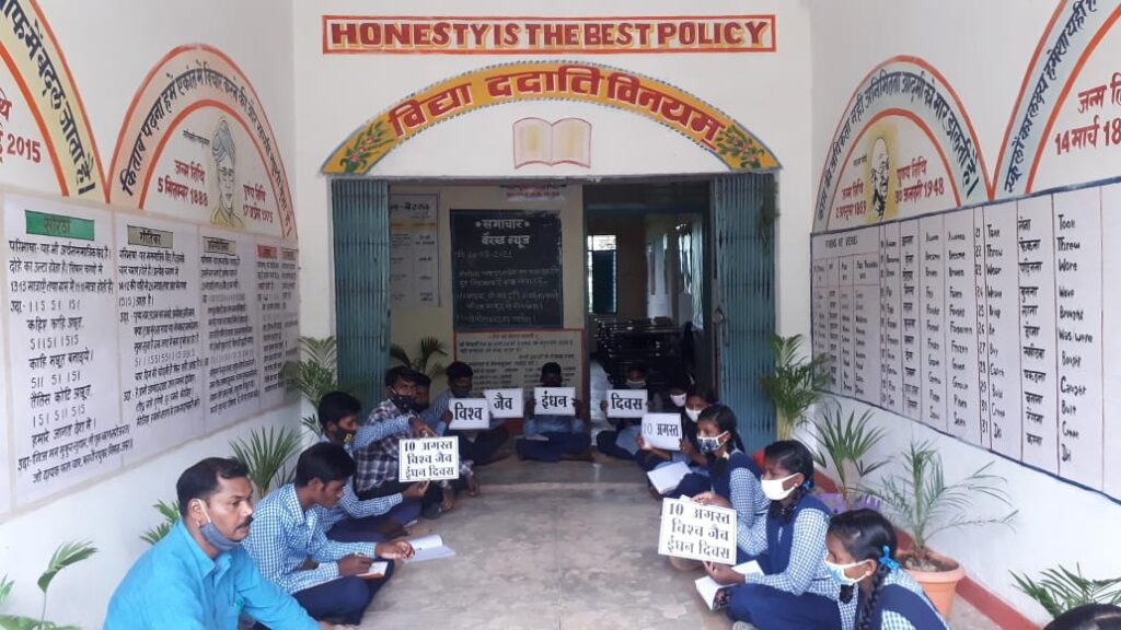 बोड़ला : वनांचल के शास.हाई स्कूल बैरख,विकास खंड बोड़ला,जिला- कबीरधाम में विश्व जैव ईंधन दिवस मनाया गया। जिसमें सभी बच्चों के साथ मिलकर शिक्षकों के द्वारा संगोष्ठी का आयोजन कोरोना गाइडलाइन का पालन करते हुए आयोजन किया गया ।जिसमें सर्वप्रथम दिवस के बारे में प्रकाश डालते हुए प्राचार्य सोहन यादव ने कहा कि इस दिवस को हर साल 10 अगस्त को पेट्रोलियम एवं प्राकृतिक गैस मंत्रालय द्वारा विश्व जैव ईंधन दिवस के रूप में मनाया जाता है। भारत में 10 अगस्त 2018 से इसे लागू किया गया।