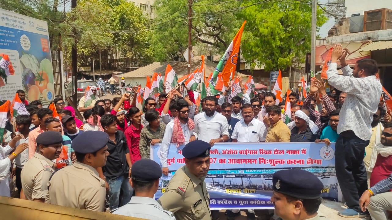 नेहरुनगर-चिखली-अंजोरा बाईपास स्थित टोल नाका में सीजी 07 पासिंग वाहनों के आवागमन को निशुल्क कराने युवा कांग्रेसीयों ने रैली निकालकर प्रशासन को प्रधानमंत्री और केंद्रीय सड़क परिवहगन मंज्ञी के नाम सौंपा ज्ञापन
